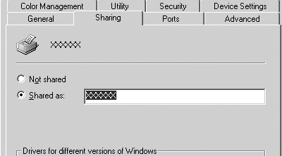 Per un server di stampa Windows 2000, selezionare Shared as (Condividi con nome), quindi digitare il nome nella casella Share name (Nome condivisione) e fare clic su OK.