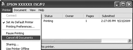 Per annullare tutti i documenti in stampa, selezionare Elimina tutti i documenti nel menu Printer (Stampante).