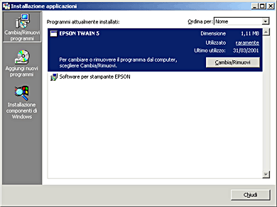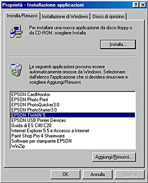 Selezionare EPSON TWAIN 5 dall'elenco, quindi fare su Cambia/Rimuovi.