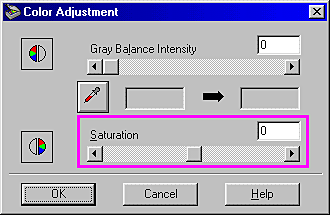 ![]() | Per cambiare il livello del bilanciamento dell'intensità dei grigi del colore selezionato, spostare il cursore del dispositivo di scorrimento verso destra o verso sinistra oppure digitare un valore nella casella di testo. |