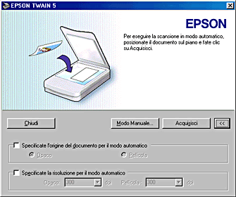 Per specificare l'origine del documento, selezionare la casella di controllo Specificate l'origine del documento per il modo automatico e quindi selezionare l'origine del documento. Nel modo Automatico verrà riconosciuta soltanto l'origine del documento selezionata. In questo modo vengono ridotti gli errori di riconoscimento del tipo di documento e il tempo di riscaldamento preliminare, e la scansione di anteprima risulta pertanto più rapida.
