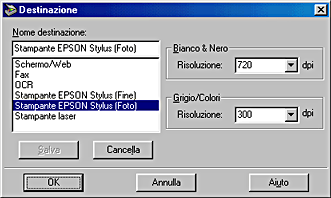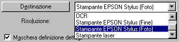Se si sta utilizzando una stampante EPSON Stylus e le impostazioni di qualità di stampa utilizzate sono Economy, Normale o Super nel software della stampante, si consiglia di selezionare Stampante EPSON Stylus (Fine). Se si sta stampando con impostazioni di qualità di stampa Ultra o Foto, selezionare Stampante EPSON Stylus (Foto).