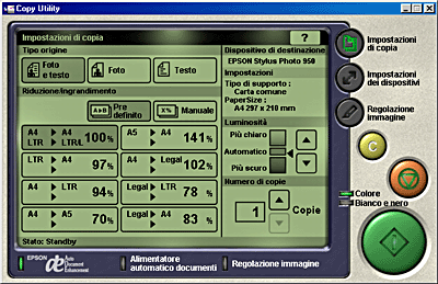Copy sullo scanner (che esegue Copy Utility nella finestra EPSON Smart Panel) per effettuare delle copie.