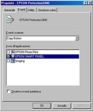 È possibile assegnare ai tasti dello scanner qualunque applicazione diversa da EPSON Smart Panel, in grado di supportare gli Eventi scanner (ad esempio, Imaging per Windows, se installato) in Windows. Quando si preme il tasto