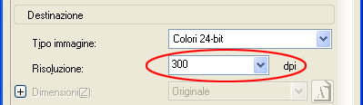 Selezionare 300 dpi dalla casella di riepilogo Risoluzione.