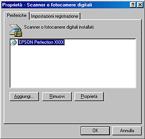 Per utenti di Windows Me: Fare clic con il pulsante destro del mouse sull'icona dello scanner e scegliere Proprietà.