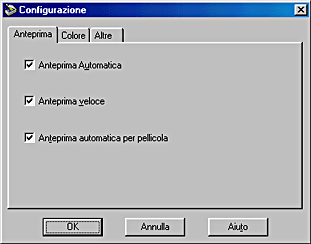 Fare clic sul pulsante Configurazione per aprire la finestra di dialogo Configurazione, dove sarà possibile eseguire diverse impostazioni di configurazione relative alla finestra e all'immagine di anteprima nonché alla regolazione del colore.