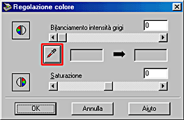 Nella finestra di dialogo Regolazione colore, fare clic sul pulsante a forma di contagocce sotto il dispositivo di scorrimento Bilanciamento intensità grigi.