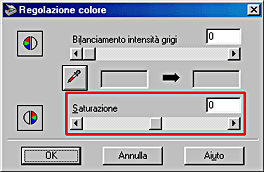 ![]() | Per modificare il livello dell'intensità dei grigi del colore, spostare il cursore del dispositivo di scorrimento verso sinistra o verso destra oppure digitare un valore compreso tra 0 e 100 nella casella di testo. |