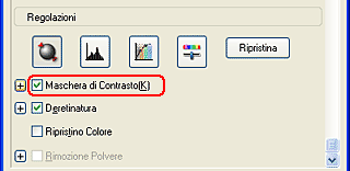 Selezionare la casella di controllo Maschera di Contrasto nella sezione Regolazioni (può risultare necessario scorrere fino al fondo della schermata).