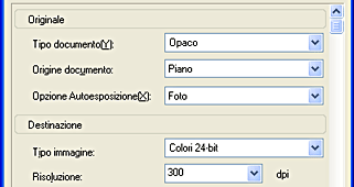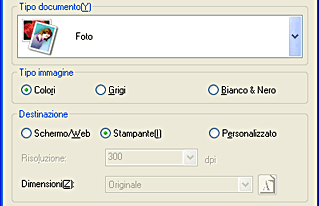 Specificare le impostazioni di Originale, Tipo immagine e Risoluzione corrispondenti alle immagini.