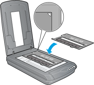 Collocare il supporto per pellicola sul piano di lettura allineandolo all'angolo superiore destro del piano di lettura.