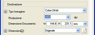 Quando si esegue la scansione di una pellicola da 35 mm e si ingrandisce l'immagine acquisita al formato A2, specificare 4800 dall'elenco Risoluzione per ottenere una qualità superiore della grana.