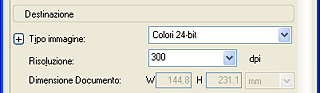 Quando si specifica una risoluzione elevata, il numero di pixel dei dati aumenta e l'immagine acquisita risulta a grana fine. Tuttavia, all'aumentare della risoluzione, aumentano le dimensioni dei dati. Specificare una risoluzione adatta allo scopo della scansione.