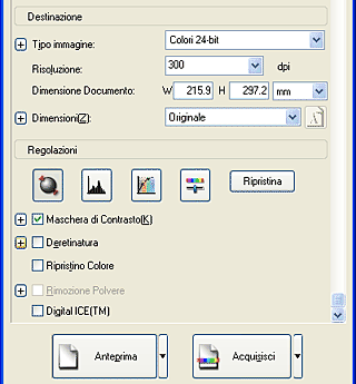 ![]() | Avviare EPSON Scan e quindi selezionare il modo Professionale. Per informazioni dettagliate sulla selezione del modo di scansione, vedere Modifica del modo di scansione. |
