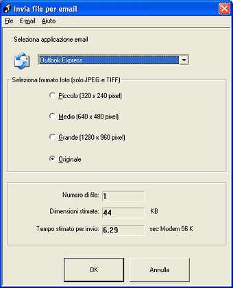 Avviando EPSON Attach To Email, è possibile inviare immagini come allegati di posta elettronica. Questa applicazione supporta diversi programmi di posta elettronica e consente di regolare le dimensioni dell'immagine prima di allegarla all'email.