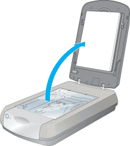 Per documenti spessi o larghi, è possibile rimuovere il coperchio documenti per rendere più agevole l'allineamento del documento. Vedere Rimozione del coperchio documenti.
