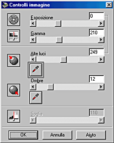 ![]() | Nella finestra di dialogo Controlli immagine, fare clic sul pulsante a forma di contagocce sotto il dispositivo di scorrimento Alte luci. |