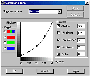 | Per ulteriori informazioni sulla correzione dei toni, vedere Utilizzo della curva di tono e Correzione tono. |