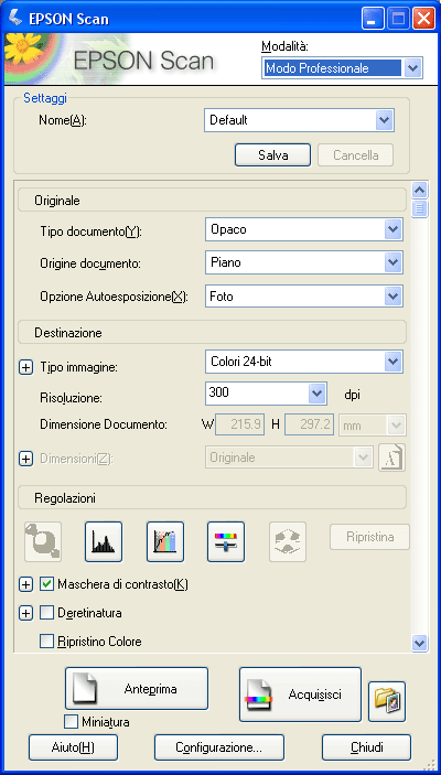Per definire le impostazioni di base per un documento o una foto in Epson Scan, effettuare i passaggi che seguono: