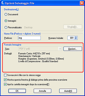 Per ulteriori informazioni sull'uso delle impostazioni di Scansione su PDF fare clic su Aiuto nella finestra Imp. scansione PDF.