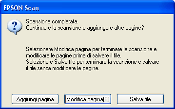 Una volta definite le impostazioni del file, fare clic su OK. Epson Scan esegue la scansione della pagina e visualizza la finestra che segue.
