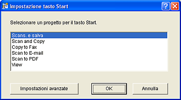 Fare clic sulla freccia nell'elenco accanto al nome del tasto, quindi selezionare il programma di progetto che si desidera assegnare. (Per informazioni dettagliate, vedere la tabella riportata sopra.) Fare clic su OK, quindi fare clic su Annulla per chiudere la finestra delle impostazioni del tasto Start.