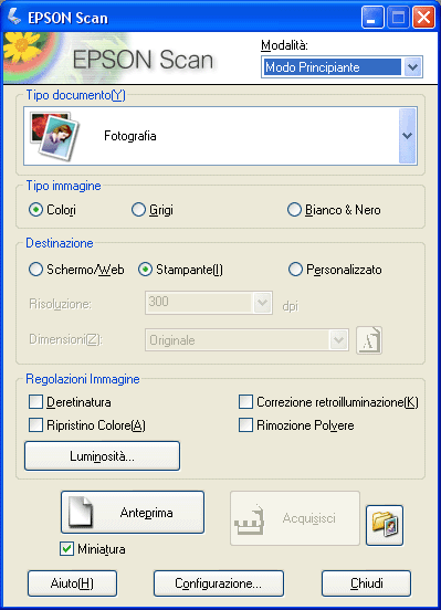 Per definire le impostazioni di base per un documento o una foto in Epson Scan, effettuare i passaggi che seguono: