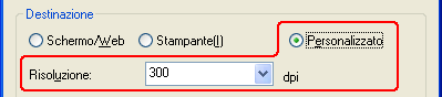 Personalizzato se si desidera selezionare una risoluzione specifica per impieghi diversi.