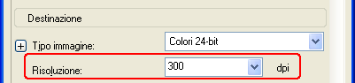 Se si acquisiscono le immagini al 100% delle dimensioni o proporzione inferiore e non verranno ingrandite in seguito, è possibile mantenere le impostazioni di Risoluzione selezionate da Epson Scan in base alle impostazioni della Destinazione (solo Modo Principiante).