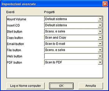 Dall'elenco Eventi scanner, scegliere il tasto al quale si desidera assegnare un programma.