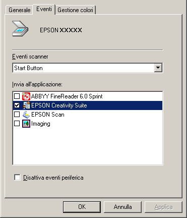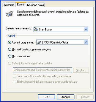 Assegnazione di un programma di progetto di Epson Creativity Suite a un tasto dello scanner
