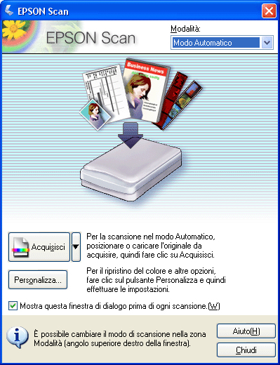 La modalità selezionata rimane valida al successivo avvio di EPSON Scan.