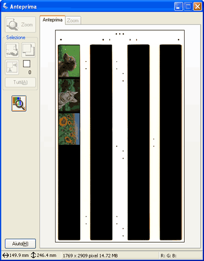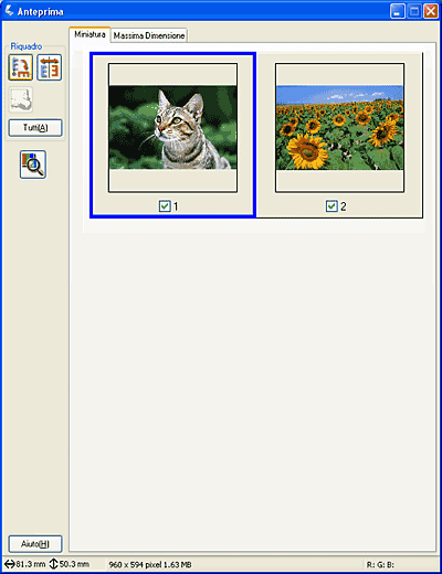Una volta definite le impostazioni di base e di risoluzione nel modo Principiante o Professionale, è possibile visualizzare l'anteprima delle immagini e selezionare o regolare l'area delle immagini da acquisire. EPSON Scan visualizza le immagini di anteprima in una finestra di anteprima separata sullo schermo.