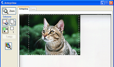 È possibile spostare la selezione, regolarne le dimensioni e creare più selezioni su una singola immagine (solo anteprima Normale) per acquisire aree diverse dell'immagine in file di scansione separati. Effettuare i passaggi che seguono: