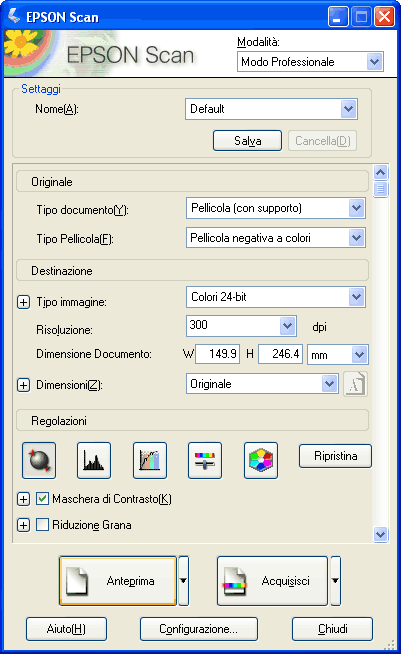Prima di acquisire le pellicole o le diapositive, è necessario definire le seguenti impostazioni di base: