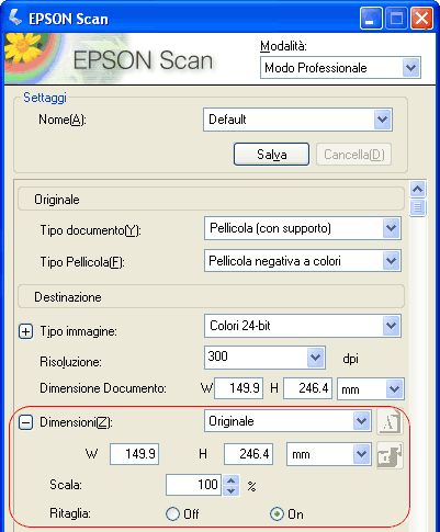 Per definire le impostazioni di base per pellicole o diapositive in EPSON Scan, effettuare i passaggi che seguono: