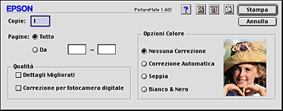 Applica una tonalità seppia alle fotografie. Questa funzione è valida soltanto per immagini fotografiche. I dati di testo e i disegni al tratto vengono stampati con i colori originali. |
