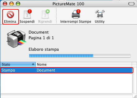 ![]() | Fare clic sul pulsante Elimina per annullare la stampa. |