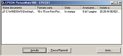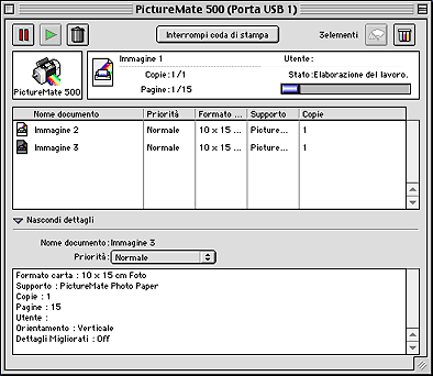 Dopo aver inviato un lavoro di stampa alla stampante, è possibile utilizzare l'utility EPSON MonitorIV per controllare, annullare o modificare la priorità dei lavori di stampa che sono in coda in attesa di essere stampati. Questa utility mostra inoltre lo stato del lavoro in corso di stampa.