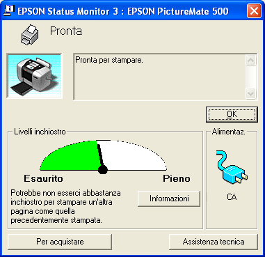 L'utility EPSON StatusMonitor tiene sotto controllo la stampante. Se rileva un errore della stampante, informa l'utente con un messaggio di errore.