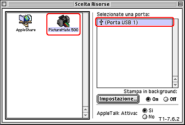 Fare clic sulla stampante in Scelta Risorse e selezionare la porta appropriata. Per la selezione della porta, vedere la tabella che segue.