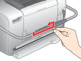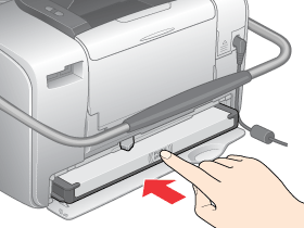 Aprire il coperchio dello scomparto della cartuccia sul retro della stampante.