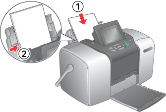 ![]() | Caricare la carta con il lato stampabile rivolto verso l'alto in modo che risulti allineata alla guida laterale destra e farla scorrere nell'alimentatore. Quindi, spostare la guida laterale sinistra contro il bordo sinistro della carta. Accertarsi che la risma di carta non superi le linguette all'interno delle guide laterali. |