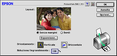 Selezionare Verticale (alto) o Orizzontale (largo) per modificare l'orientamento delle stampe.