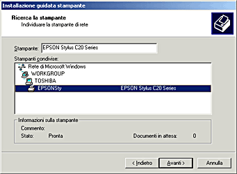 Selezionare Stampante di rete, quindi fare clic su Avanti.