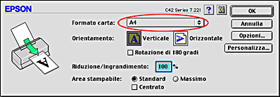 Selezionare A4 come impostazione di Formato carta. Quindi, fare clic su OK per chiudere la finestra di dialogo.