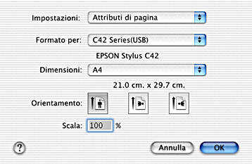 Scegliere Formato di Stampa dal menu Archivio dell'applicazione.