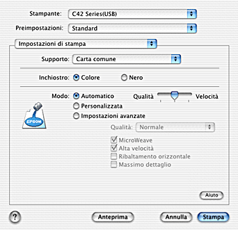 Selezionare Carta comune come impostazione Supporto e Automatico come impostazione Modo.
