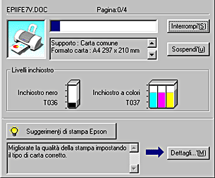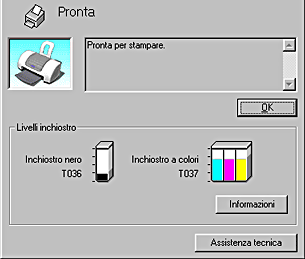 La finestra di dialogo Barra di avanzamento appare automaticamente quando si invia un lavoro di stampa alla stampante. Da questa finestra di dialogo è possibile controllare la quantità di inchiostro rimanente.